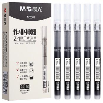 晨光直液式中性笔,黑色走珠笔,12支装,速干学生用水笔,0.5考试专用水性直液笔,签字笔,红笔,刷题作业神器,碳素黑笔,适合学习、工作使用,书写流畅,耐磨耐用。