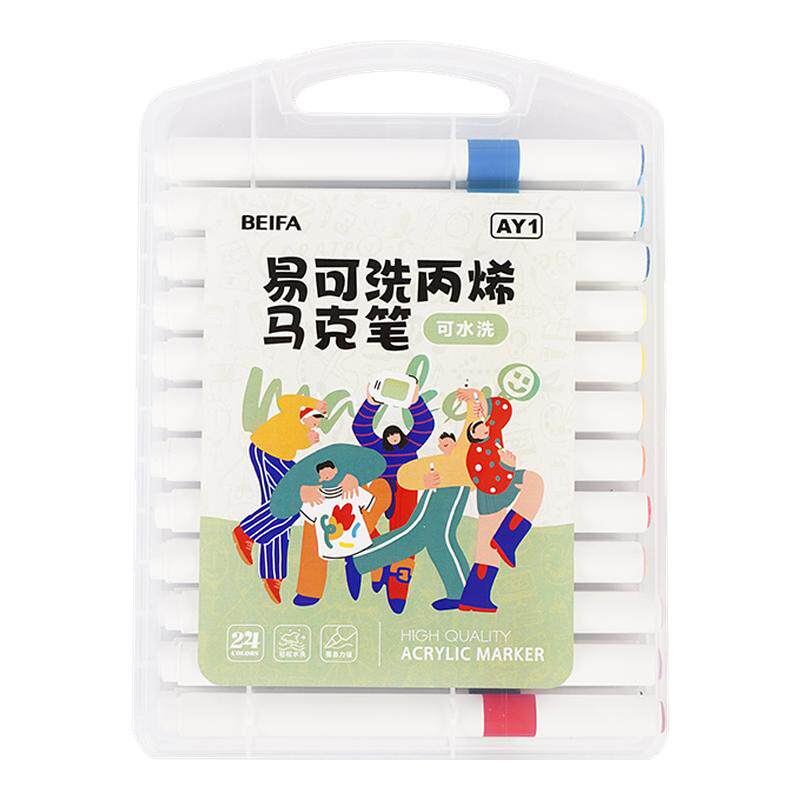 【烈儿38女神节】贝发可水洗丙烯马克笔软头不透色儿童学生绘画笔24色36色DIY幼儿园易水洗美术专用画笔,是您学习画画的好帮手!