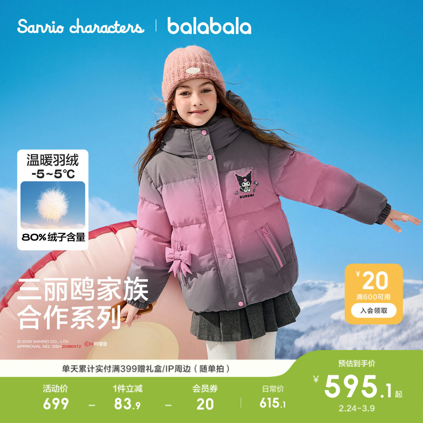 【温暖茧型羽绒服,三丽鸥联名】精选优质羽绒,轻盈保暖,适合不同年龄段的孩子穿着。短款设计,既时尚又保暖,让宝贝在寒冷的冬天也能感受到温暖。无论是学校还是家庭,都是一个不错的选择。