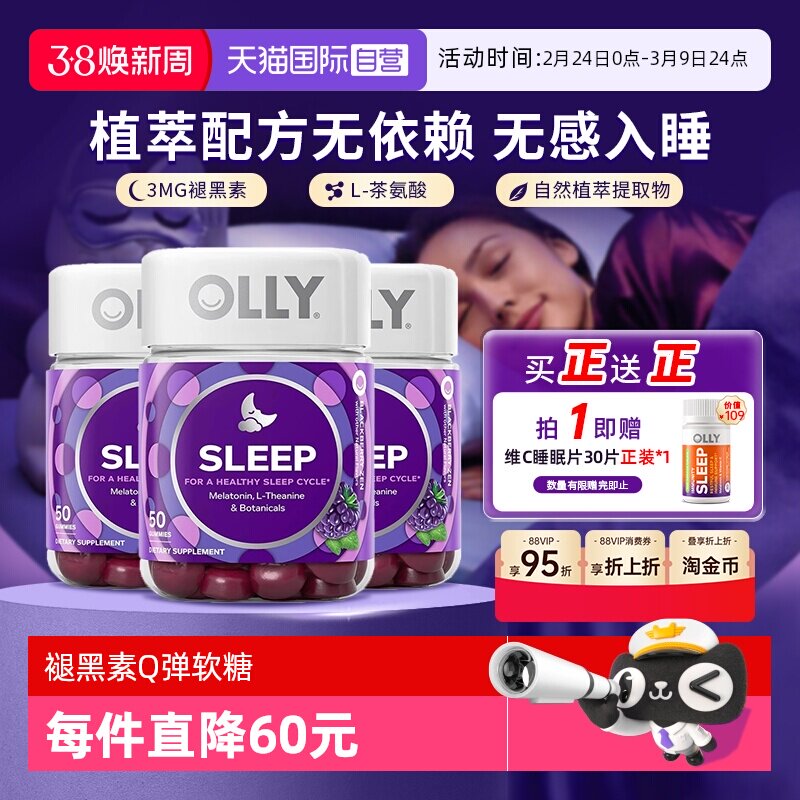 【专业睡眠保健】OLLY褪黑素安瓶软糖,富含植物萃取物,帮助您轻松入睡,提升睡眠质量。每天只需一片,即可享受高质量的夜间休息。3mg剂量,安全有效,为您的健康保驾护航。立即购买,让甜蜜的梦乡陪伴您一夜好眠。