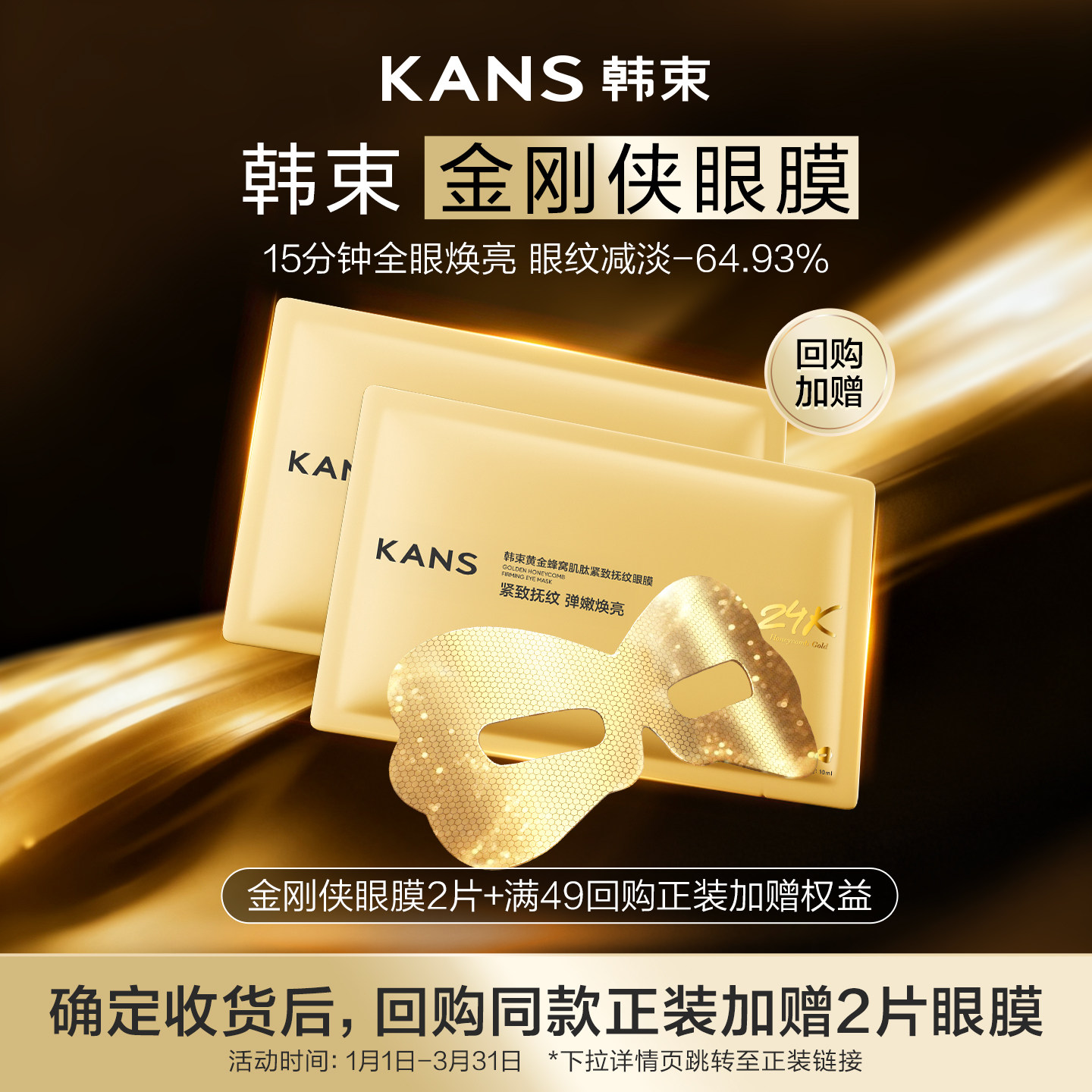 【韩束金刚侠眼膜2片装】淘金币可用!黄金胶原炮配方,淡化细纹、紧致抗皱,提亮眼周肌肤,眼部护理!
