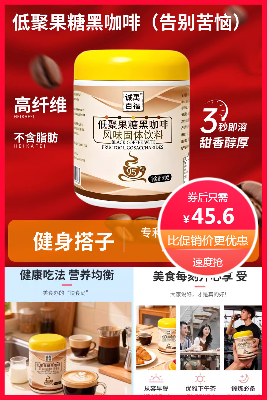 【官方立减9.6元+88VIP专享立减9.9元+下拉详情领大额淘金币抵扣14.25元+首单礼金4元+消费券满200减25元到手约7.55元一罐500g】益生元低聚黑咖啡,品质保障,身材管理期的好伴侣,膳食纤维+黑咖配方,轻松控卡无负担,高纯度提取,口感更醇厚,搭配巧克力,能量满满,速抢