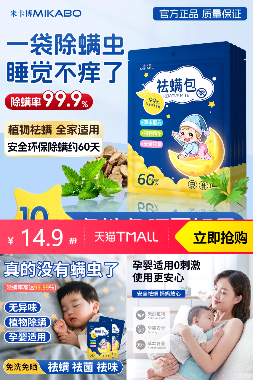 【9-10号,每天十点开始天降到手4.9】米卡博艾草除螨包10g*20袋,草本植物萃取,安心除螨。