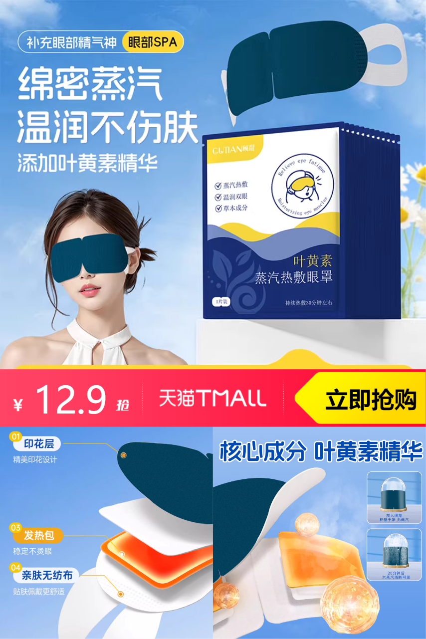 【9-10号,每天十点开始天降到手5.9】叶黄素蒸汽眼罩20片,温润不伤肤,绵密蒸汽。