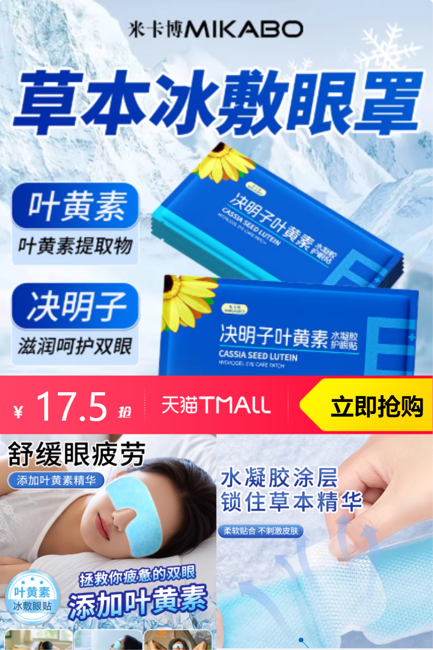 【9-10号,每天十点开始天降到手3.9】米卡博叶黄素冰敷眼罩10片,柔软贴合,不刺激皮肤。