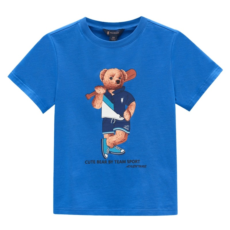 【棉】POLOWALK童装男童T恤2026夏季新品印花小熊圆领打底衫,精选优质面料,透气舒适,适合春夏季节穿着。时尚简约的设计,百搭不挑人。快来挑选一件吧!