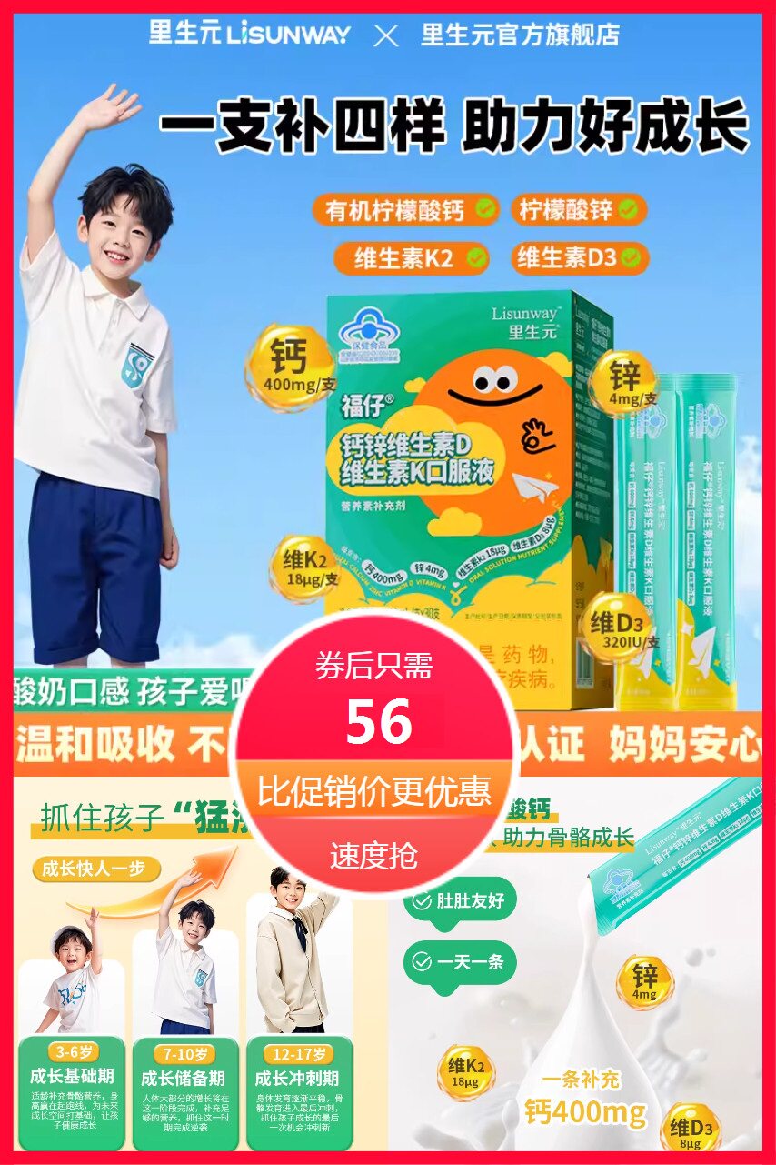 【首单+金币约40元】钙锌维生素DK口服液2瓶60支,60天量,专为6-12岁+孩子研发!400mg高含量1支补足全天钙,有机液体钙,吸收率高不刺激肠胃,温和助力骨骼发育与身高增长~无糖配方+橙子味,孩子主动爱喝,妈妈更安心~