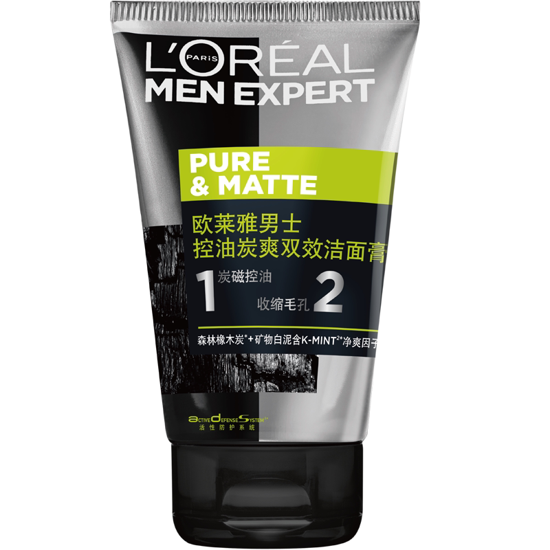 【买2立减15】欧莱雅男士炭爽双效控油洁面100ml,超赞~