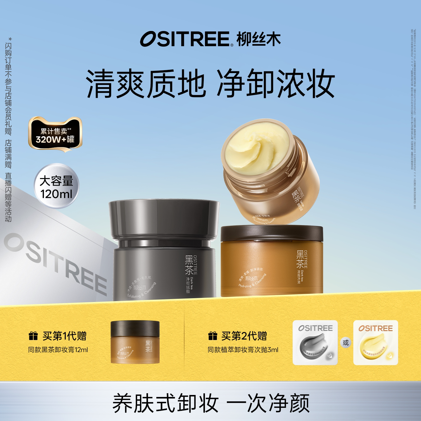 【59-10店铺优惠-限时优惠4-3元淘金币下单蕞低42左右,120ml+增同款12ml】清爽净卸全脸,养肤焕亮。植萃养卸,深澈净卸呵护屏障。柔糯质地,清幽茶香。水感净卸,清爽自在