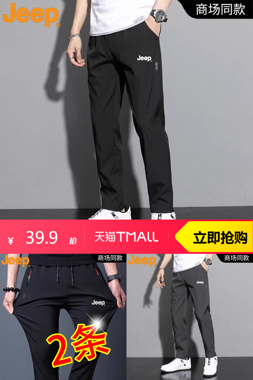 【原价239.9—店铺优惠200=到手价39.9元】Jeep品牌两件更优惠男士春夏冰丝速干裤,品质优选。