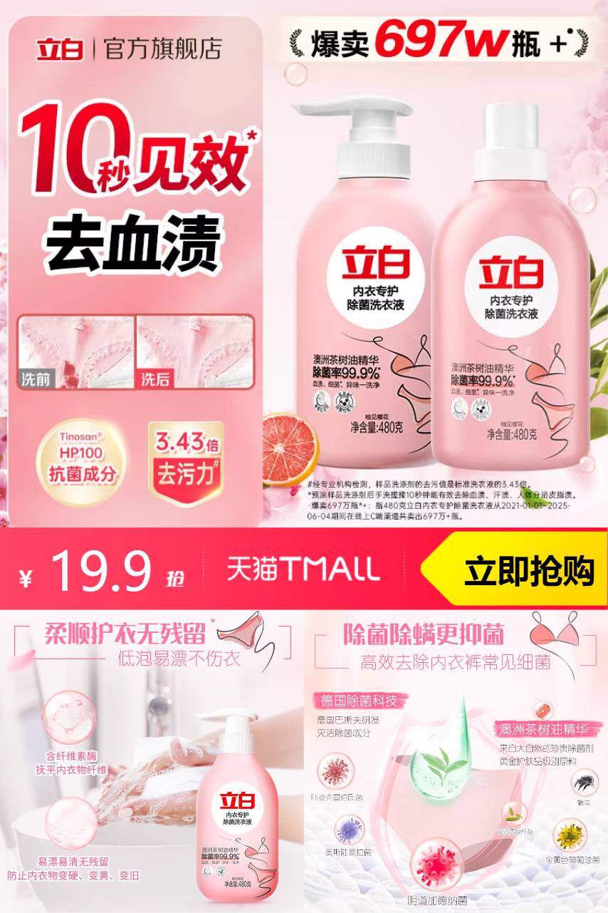 【叠加淘金币抵扣2.41 到手17.49】弱酸性配方~7大0添加,强效去血渍~有效除菌除螨,48小时长效抑菌!