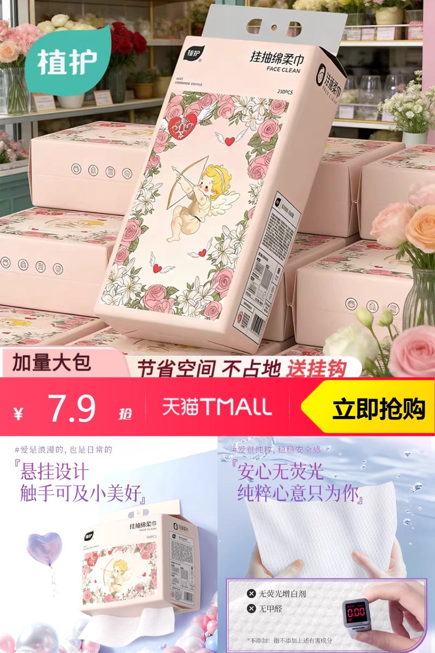 【拍单包210抽!可叠淘金币到手更便宜】植护婴儿绵柔巾一次性洗脸巾210抽,两种规格可选,悦享绵柔时光!悬挂设计,触手可及小美好,随用随抽、轻松便捷、防水防潮!云朵般柔软细腻,不磨肌肤,擦拭不易泛红。安心无荧光,纯粹心意只为你,上脸软软的很安心!快来下单试试吧!