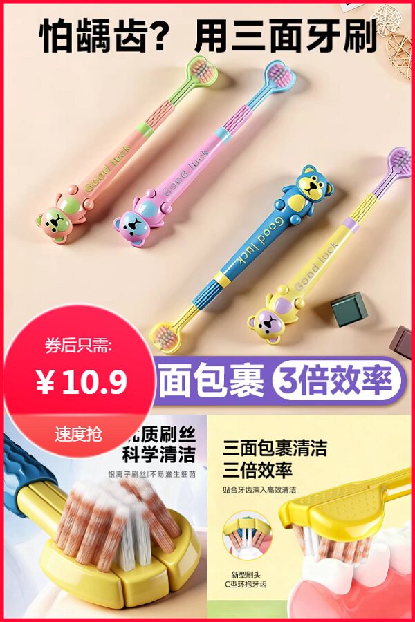 专为0-3岁宝宝设计!三面超软毛+舌苔清洁功能,呵护乳牙萌出期娇嫩口腔,可高温消毒更安心~进口食品级硅胶刷柄+欧盟认证材质,宝宝啃咬也放心,性价比之选!