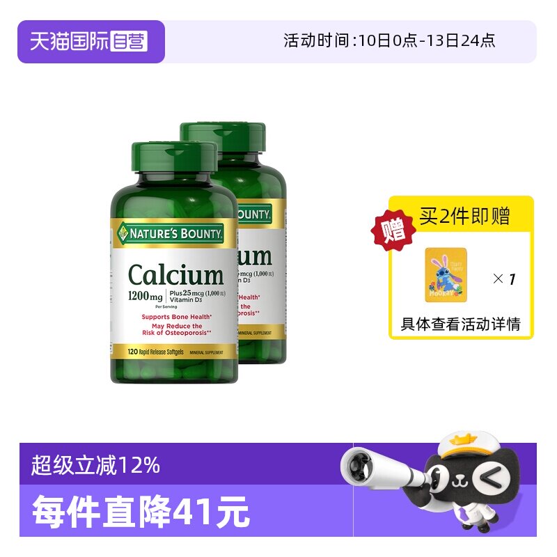 【天猫国际】自然之宝的这款产品是高质量的补钙选择。它含有丰富的维生素D3,有助于增强骨骼健康。每瓶包含1200毫克的钙质,非常适合需要额外补充钙质的人群。同时,这款产品的包装设计简洁大方,易于携带,适合家庭日常使用或旅行时携带。无论是孩子还是成人,都可以从这款产品中获得充足的营养支持。