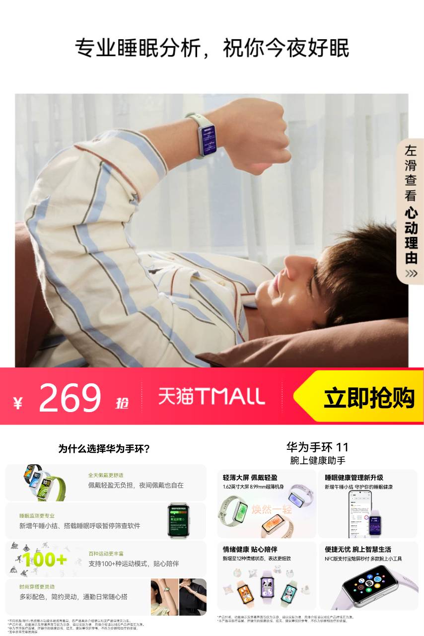 【原价269-淘金币5.38-国补15%=224.08,支持以旧换新】在忙碌的都市生活中,谁不渴望有个小小的设备来守护自己的健康?来瞧瞧我手中这款超火?的华为手环11吧!