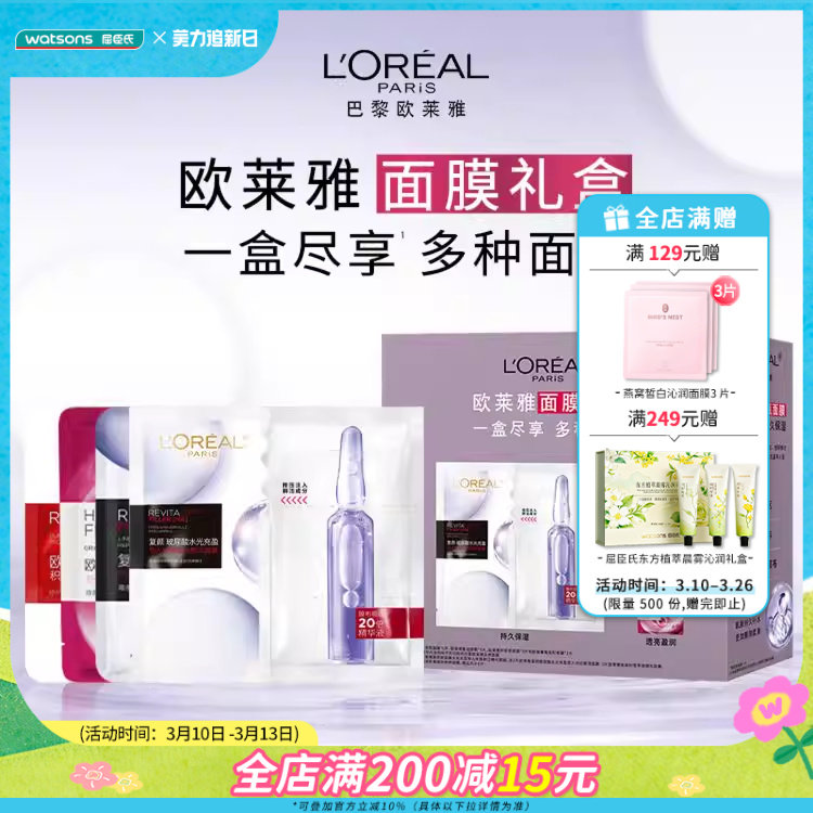 【淘金币抵9.8,到手106.2】屈臣氏欧莱雅补水面膜礼盒13片,超赞!