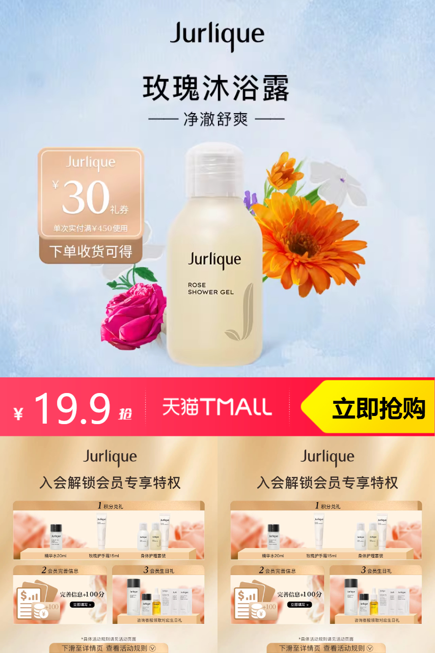 推荐:茱莉蔻玫瑰柔肤沐浴露50ml+30元礼券