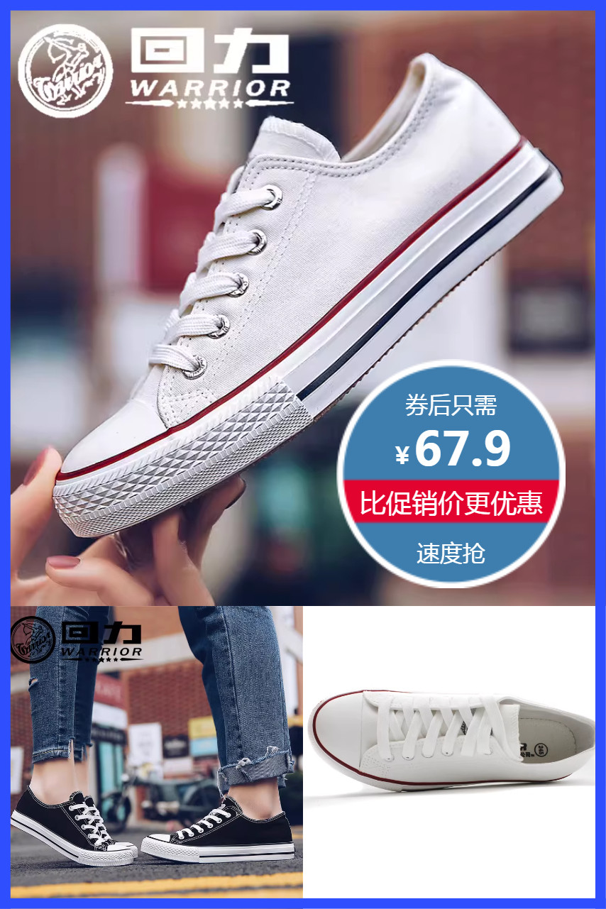 立减12.1元叠加劵67.9元!回力经典男女帆布鞋低帮百搭板鞋,多色多尺寸可选,帆布面料,透气性好,穿着舒适,防滑耐磨橡胶大底,行走更舒服