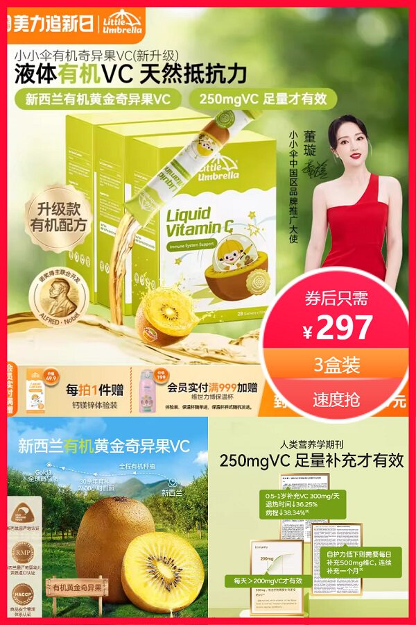 【3盒装】小小伞·有机奇异果VC(新升级),液体有机VC,天然自护力,新西兰有机黄金奇异果VC,250mgvc足量才有效,孩子的自护力战士。