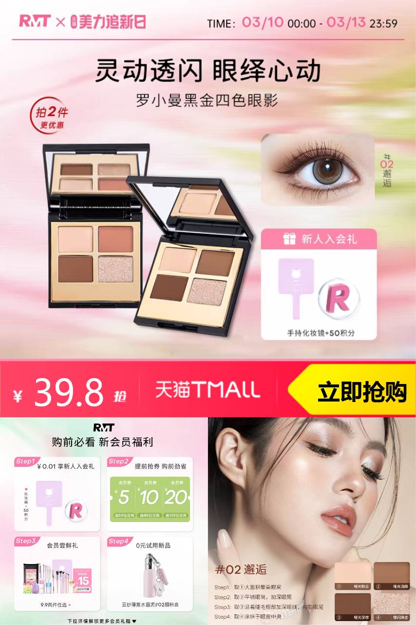 【88vip可优惠1.89,淘金币可抵扣1.4,学生立减2,到手价34.51】粉质细腻!不飞粉!轻松画出温柔、气质、高冷眼妆!低饱和色系,消肿效果一绝!