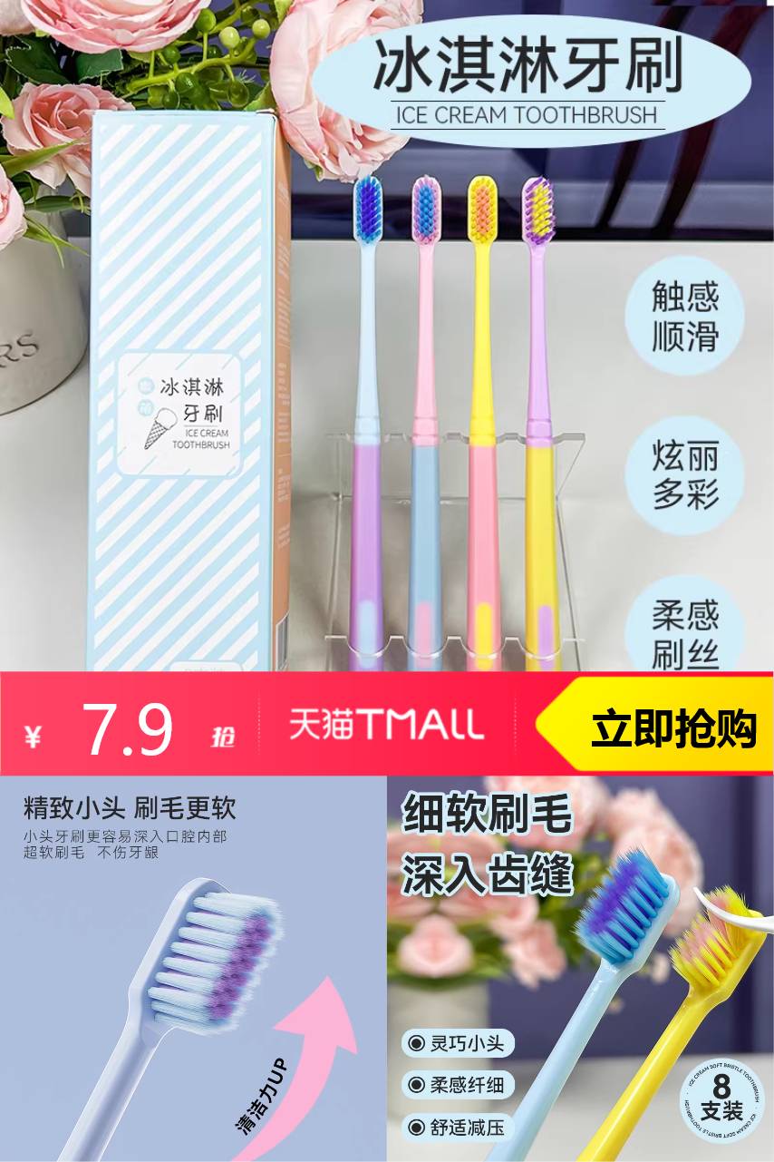 推荐:冰淇淋主题软毛牙刷8支装情侣家庭装