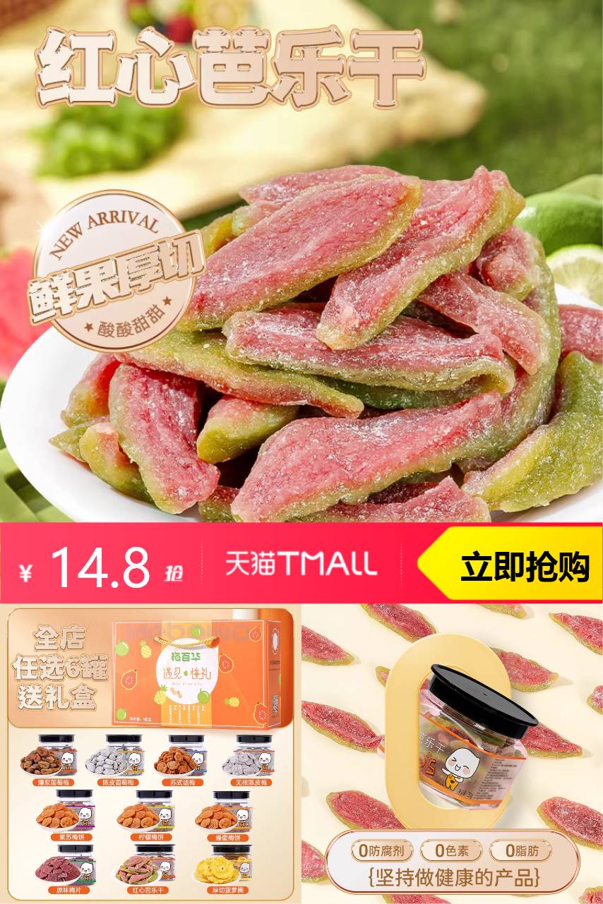 【淘金币2.04,到手12.76左右】每一颗红心芭乐都经过严格筛选,匠心独运,用心加工成这绝 佳的果干。