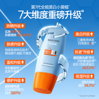 【88会员淘金币抵扣卷后到手44.3元】Mistine泰版小黄帽防晒霜60ml单瓶大容量,出行一瓶搞定!清爽不油腻,夏季防晒必备!官方旗舰店正品保障,温和不刺激,适合日常通勤和户外活动,守护肌肤健康。