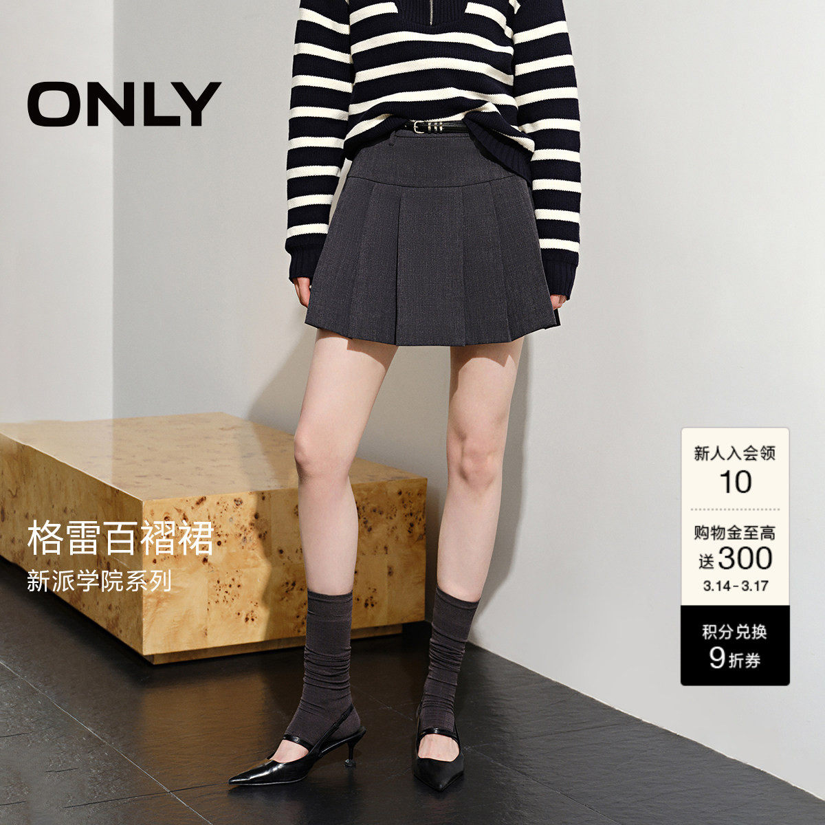 ONLY春季学院风舒适柔软亲肤显瘦A字短裙百褶裙半身裙女,时尚百搭,轻松驾驭各种场合。
