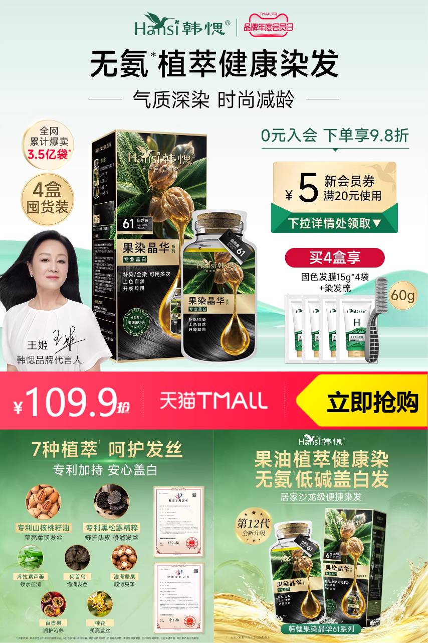 【淘金币51.76,限时红包6,到手价52.14,叠消费券到手价更低】体验自然与科技的完美结合,我们的山核桃护染发膏,让你轻松拥有自然发色。无需担心发色褪色,两盒的双重保护,持久锁色,让你无惧时间的考验。