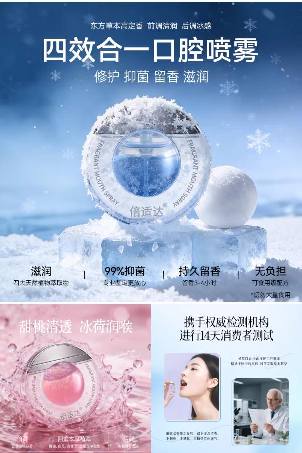 白桃薄荷双萃香型!倍适达益口香喷雾,0酒精温和配方,舒缓口腔+持久留香双效合一~9.9元焕新呼吸体验!小支装便携不占地,办公室、约会、通勤随时清新不尴尬~清新一喷,自在每一天!