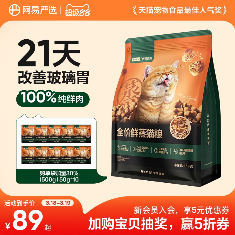 网易天成精选优质食材,精心制作而成的全价鲜蒸猫粮,为您的爱宠提供营养。这款猫粮采用轻烘焙工艺,不仅口感好,还易于消化吸收,适合不同年龄段的猫咪食用。选用新鲜肉类作为主要原料,了产品的高品质。无论是日常喂养还是特殊需求的猫咪,都能找到合适的选项。