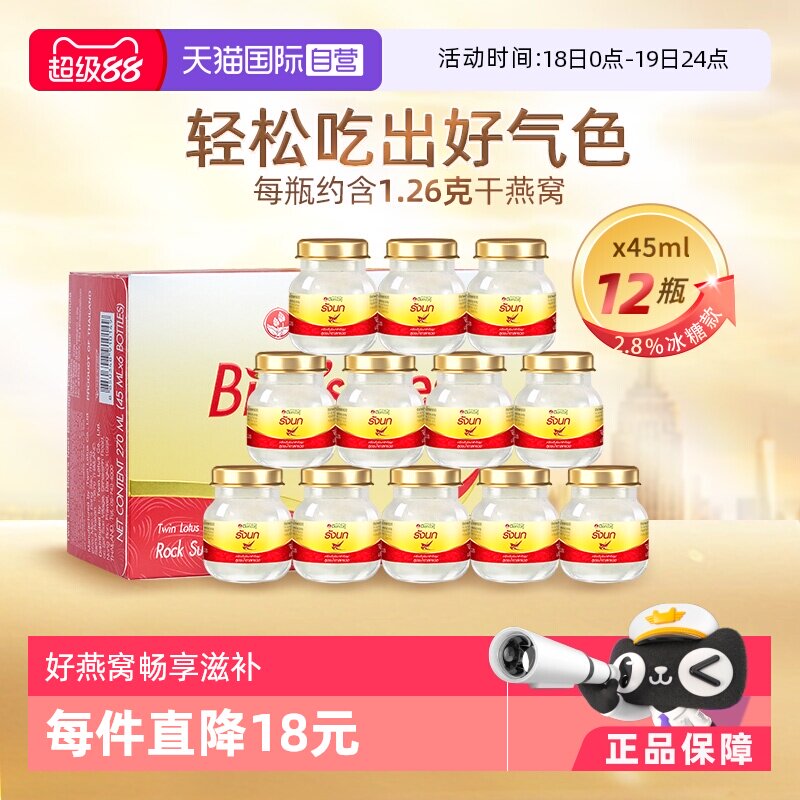 【实际到手138元共12瓶】泰国皇家贡燕,40年甄选品质,每瓶含2.8%干燕,美容养颜,男女老少皆可饮用,外观小巧,方便携带,滋补养颜,爱自己就要给自己好的~