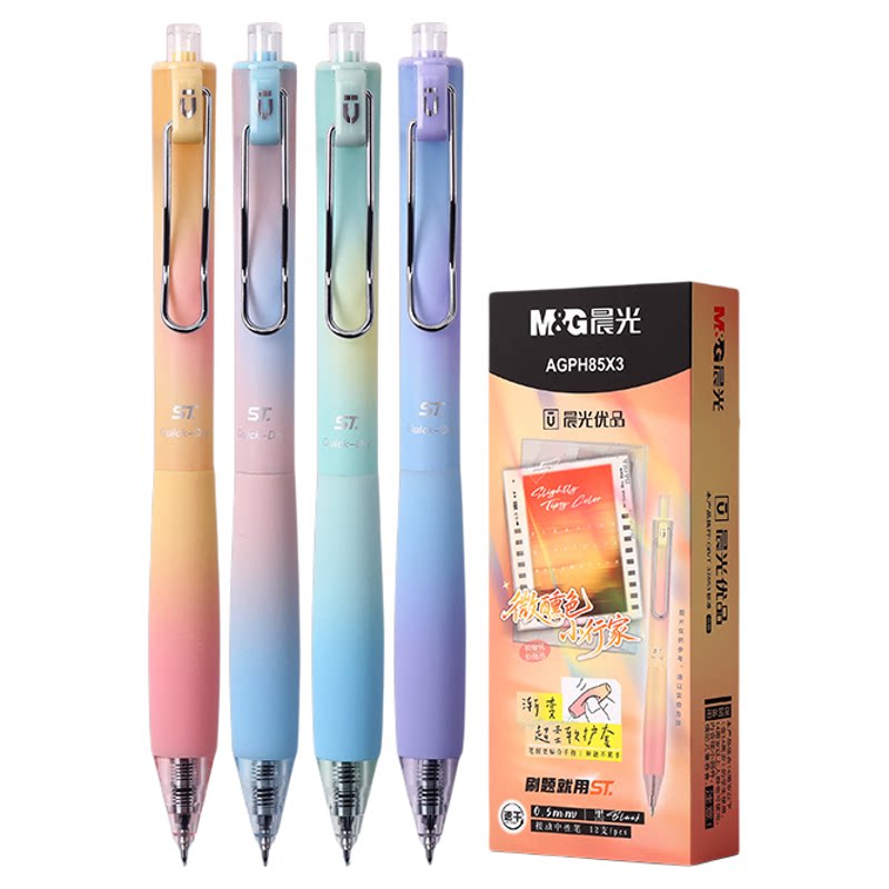 晨光晨华专卖店推荐的这款晨光按动中性笔,采用黑色笔身设计,适用于各种场景,包括学习、工作或日常使用。其独特的渐变效果使书写过程更加流畅自然,同时提供了一种独特而吸引人的视觉体验。笔尖采用了优质ST头设计,确保了书写时的顺畅性和持久性。笔身的耐用材质了长时期的使用性能,并且支持多种书写需求,无论是初学者还是专业人士都能找到适合自己的笔触。