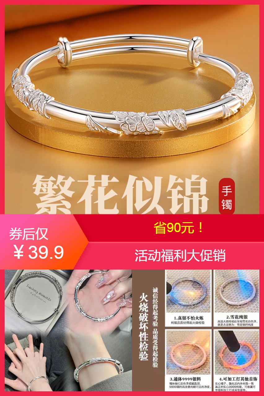活动大促销!送老婆s999繁花银手镯【券后价】39.9元【多款式选择】柔和触感,简约素雅,气质百搭百里挑一,多款主题,展现女性独有的高雅与魅力。打造生活中每个浪漫仪式感!