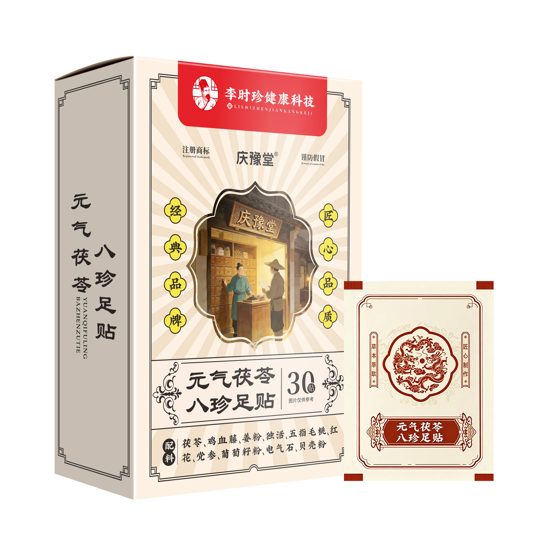 【两盒仅25元!超划算!】李时珍药房元气茯苓八珍足贴,老北京官方正品,艾灸配方,30贴装,暖足养身,明星同款,舒适贴合,助你缓解疲劳,提升元气!