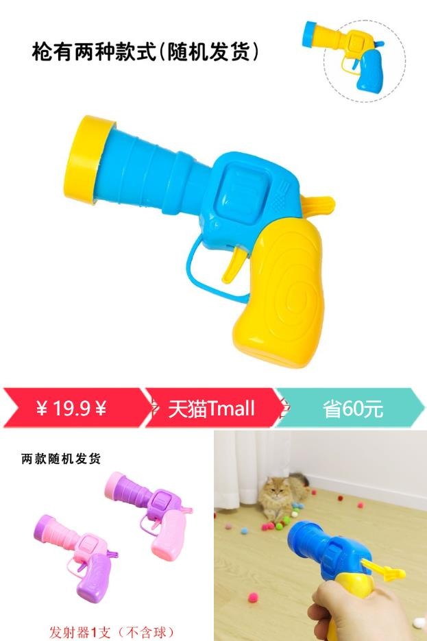推荐:逗猫玩具枪毛绒球发射枪套装