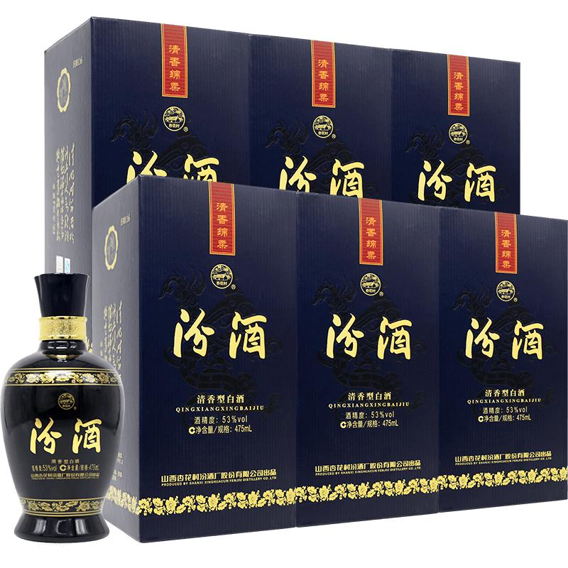 推荐:汾酒53度商务蓝瓷整箱白酒