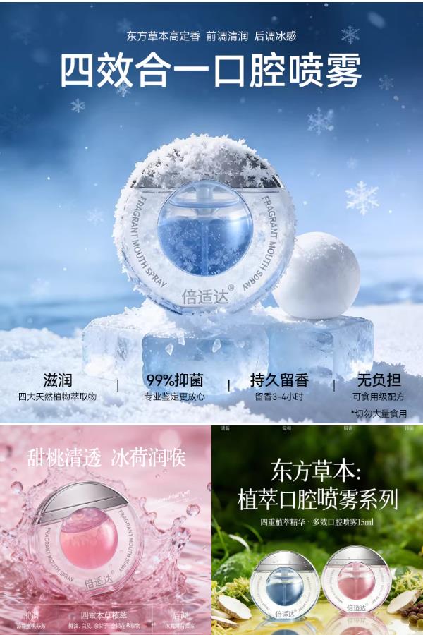 白桃薄荷双萃香型!倍适达益口香喷雾,0酒精温和配方,舒缓口腔+持久留香双效合一~9.9元两支焕新呼吸体验!小支装便携不占地,办公室、约会、通勤随时清新不尴尬~清新一喷,自在每一天!