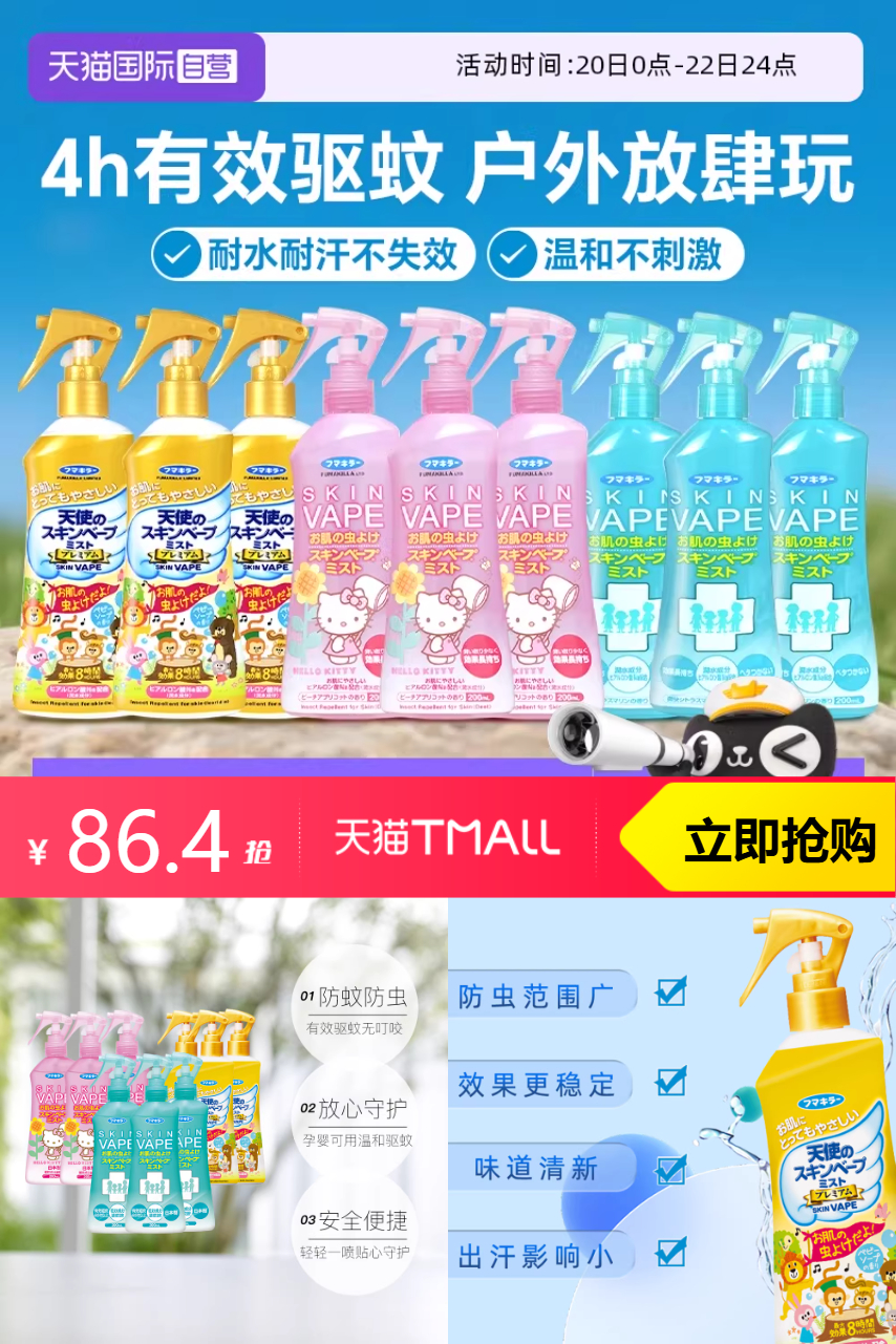 【淘金币减5.43元,88VIP到手只要76.65元】轻巧易携带,户外旅行、露营、公园玩耍,轻松防蚊!权威机构认证,安全无毒害!
