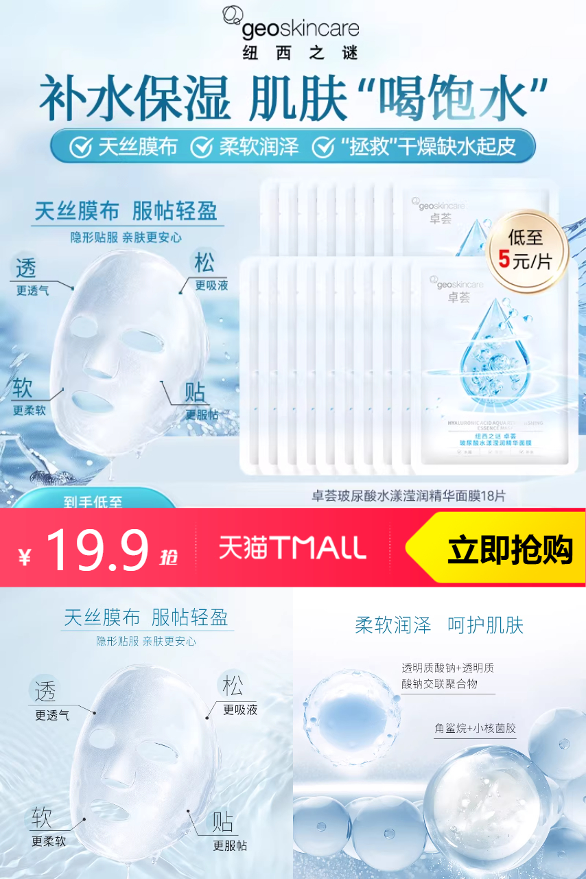 柔润保湿成分,特别添加双重酵母,甄选天丝膜布,轻薄透气,保水力超强,精华液质感,快速补水,守护你的每一面~