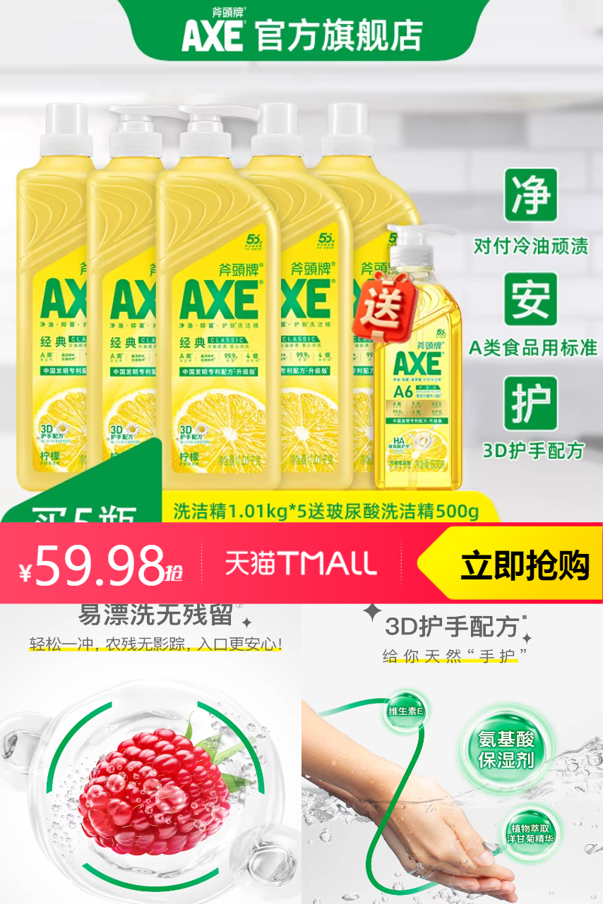 【淘金币1.22,赠一瓶500g玻尿酸洗洁精,到手6瓶 59.88】独特的成分搭配,我们秉持“绿色护肤”理念,将大自然的恩赐融入日常清洁。天然植物精华的配方,无添加化学物质,无刺激,对敏感肌肤更友好。