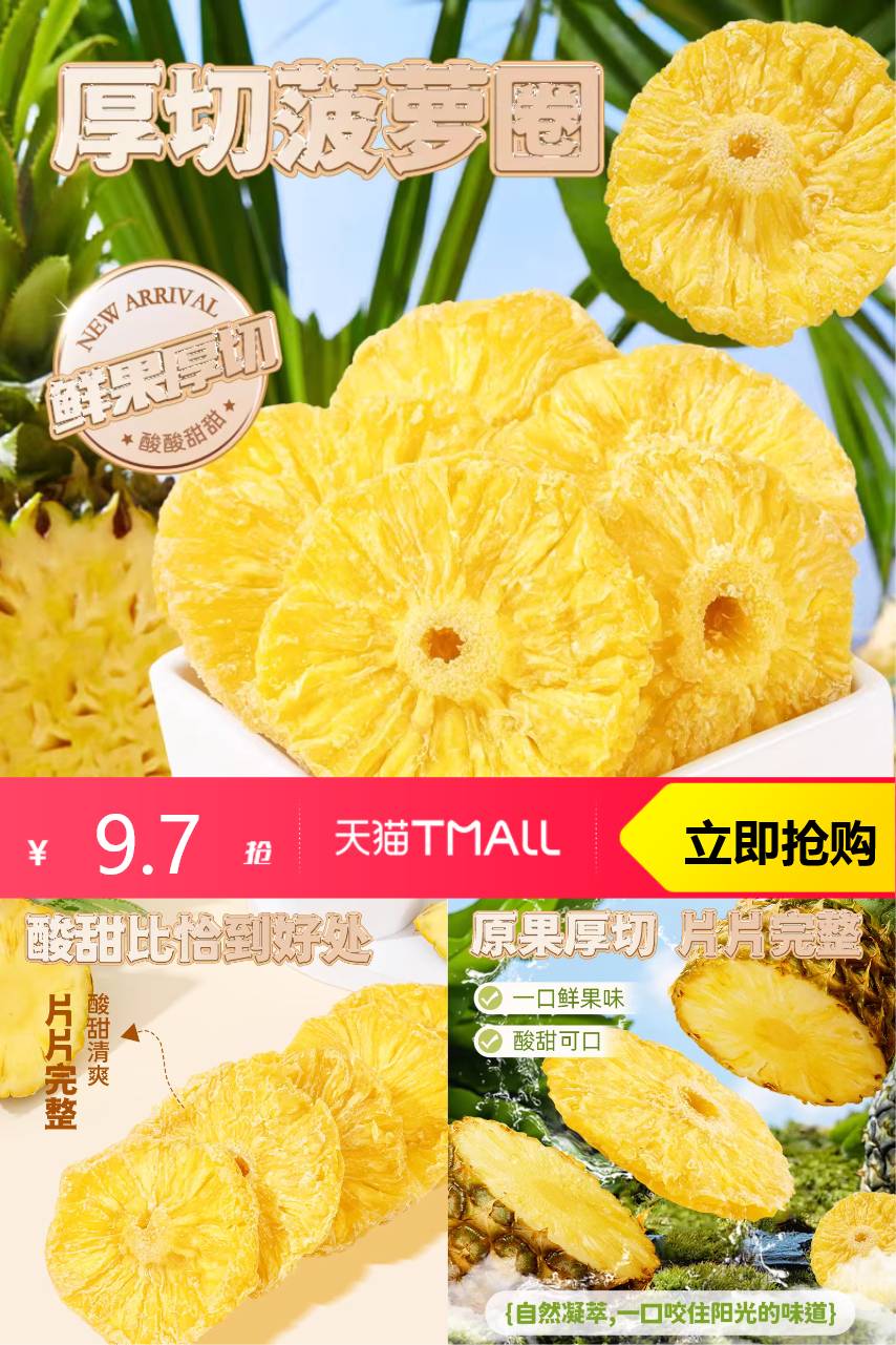 【淘金币1.84,食品加补券满90-2,最终到手7.86左右】梅百华!厚切菠萝圈,鲜果厚切,酸酸甜甜超有嚼劲!脱水工艺锁住菠萝原始果香!保留了菠萝丰富的维生素C和膳食纤维,既能满足嘴馋,又能促进消化~追剧的时候来一片也太满足了吧