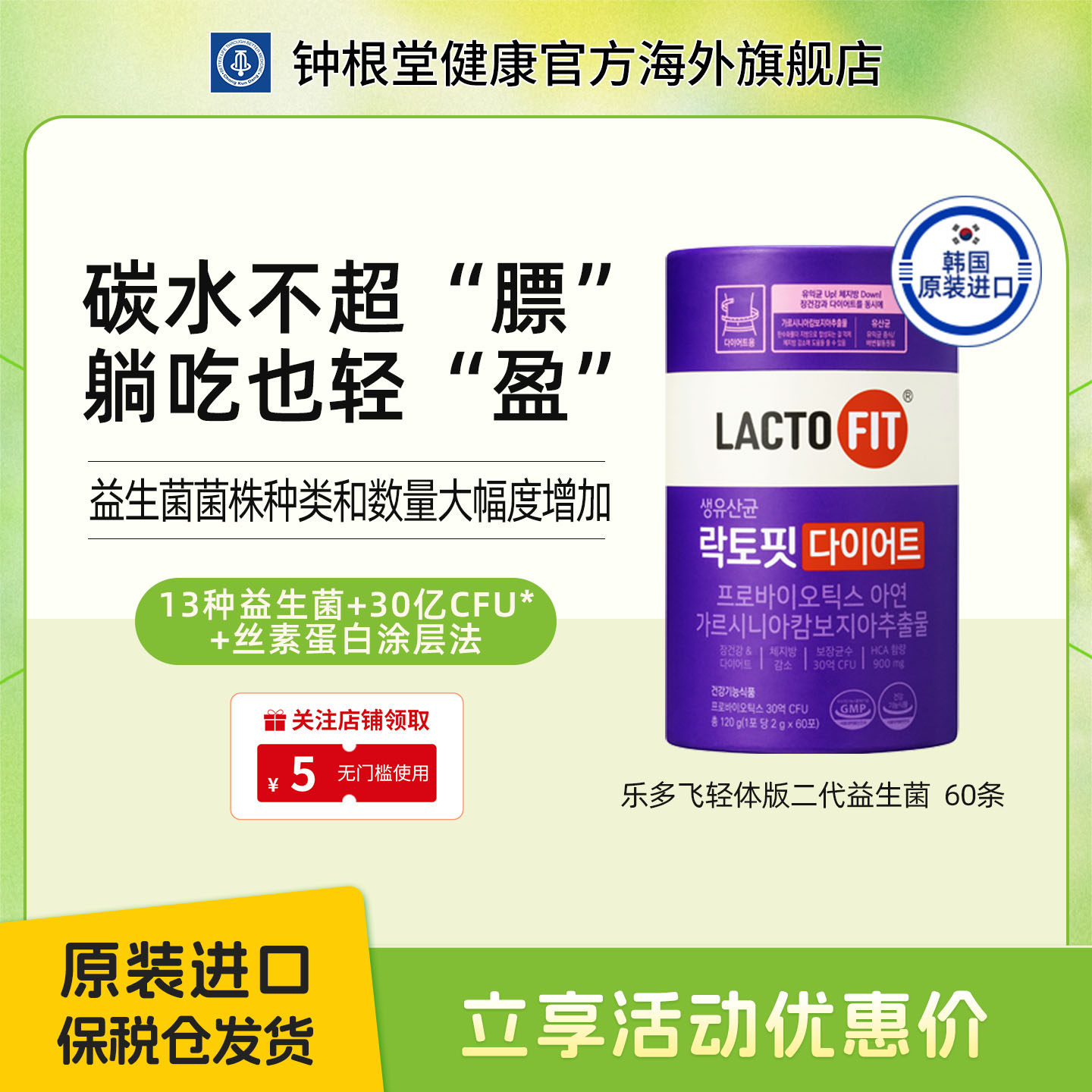 这款乐多飞轻体二代益生菌是钟根堂品牌的新产品,采用韩国钟根堂乐多飞的优质益生菌,结合了轻体版和二代的双重优势,旨在帮助消费者调理肠道、改善肠胃健康。它不仅方便快捷,而且口感清新,适合各种健身爱好者。无论是作为日常膳食补充还是运动后的恢复,都是理想的选择。
