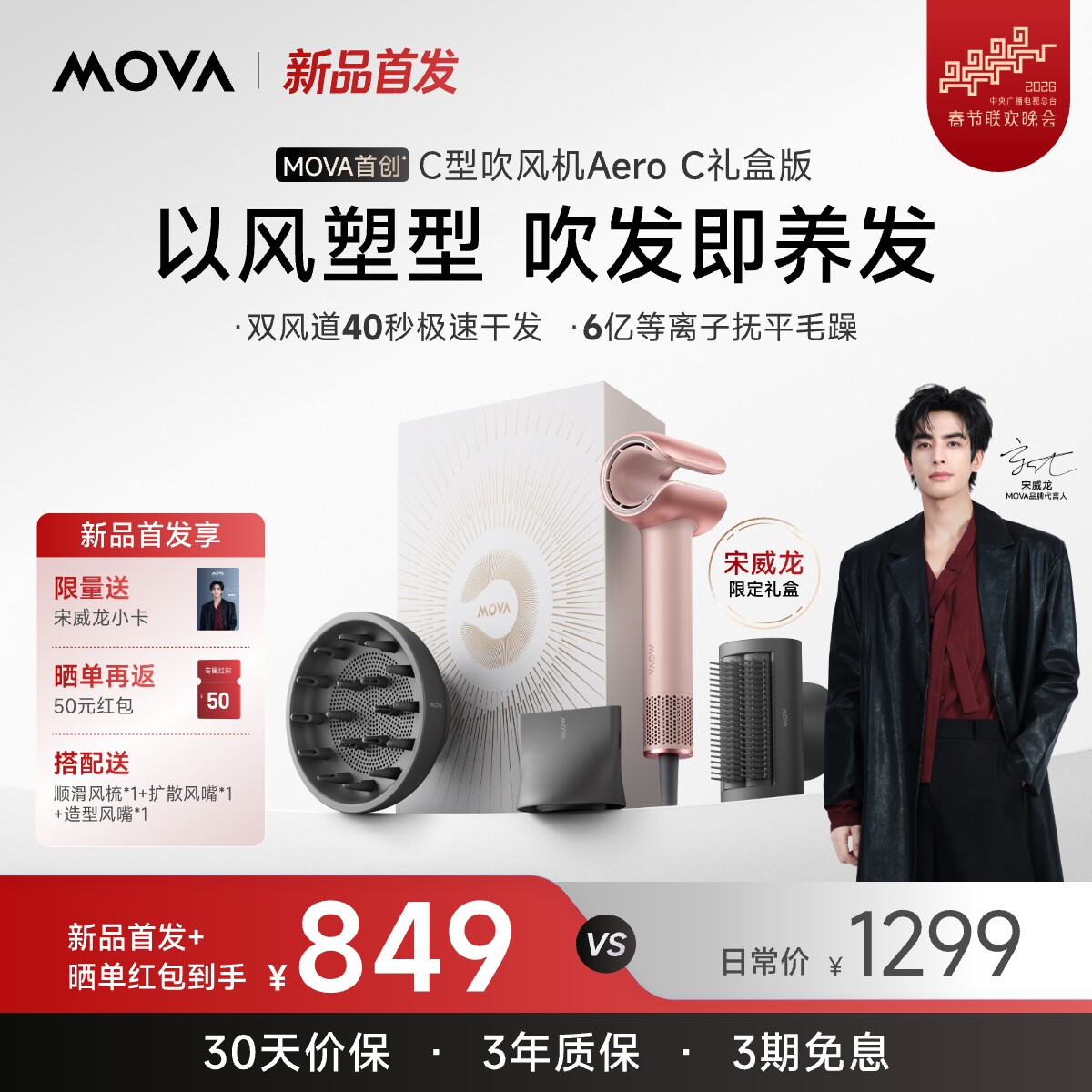 【创新增值】定制,与明星同款!MOVA行者一号专卖店推出全新【宋威龙限定礼盒】,包含MOVA家用高速吹风机Aero C、等离子护发功能,让您在享受吹风体验的同时,感受科技带来的舒适与便利。这款吹风机采用创新的C型双风道设计,能够快速冷却机身,有效保护您的头发;同时搭载等离子技术,释放纯净空气,让每一次吹风都成为一场身心放松之旅。