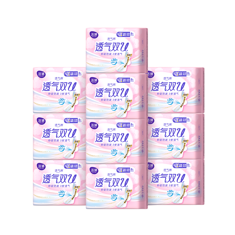 【1号开售8折】洁婷透气卫生巾套装82片,专注透气型卫生巾,无荧光剂,安全健康,亲肤绵柔表层,瞬吸防漏大吸力,贴心呵护小假期!【赠运费险】