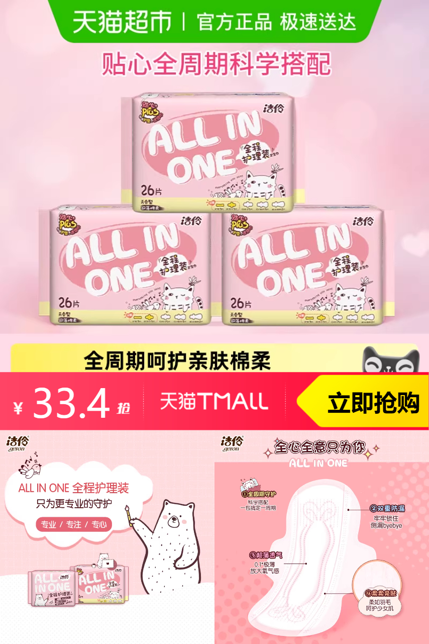 【回头客立减1元-淘金币抵扣2.08-购物券88.5抵扣2.06-闪购红包3.56-淘礼金1.7=到手23】独特吸湿性能让你无后顾之忧,迅速吸收并分散经血,让私密处保持干爽。