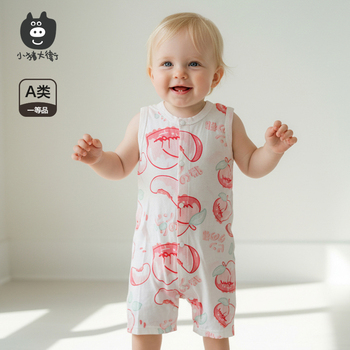 【15.4/件】小猪大卫新生婴儿纯棉连体衣夏A类无骨对开爬服男女宝宝薄款哈衣。