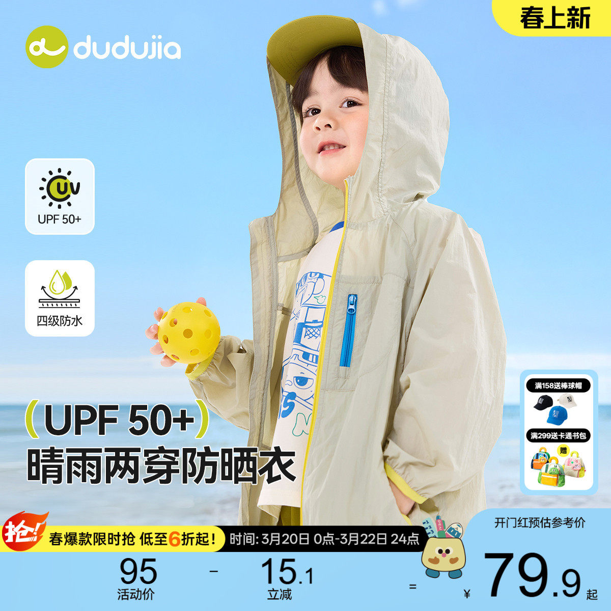 【UPF50+】专为宝宝设计,防紫外线、防水透气,保护宝宝肌肤不受伤害。时尚连帽设计,让宝贝在夏日也能保持清爽舒适。纯棉面料,柔软亲肤,呵护宝宝娇嫩肌肤。适合不同年龄段的小朋友,是夏天必备的户外装备。赶紧为你的宝贝选购吧!
