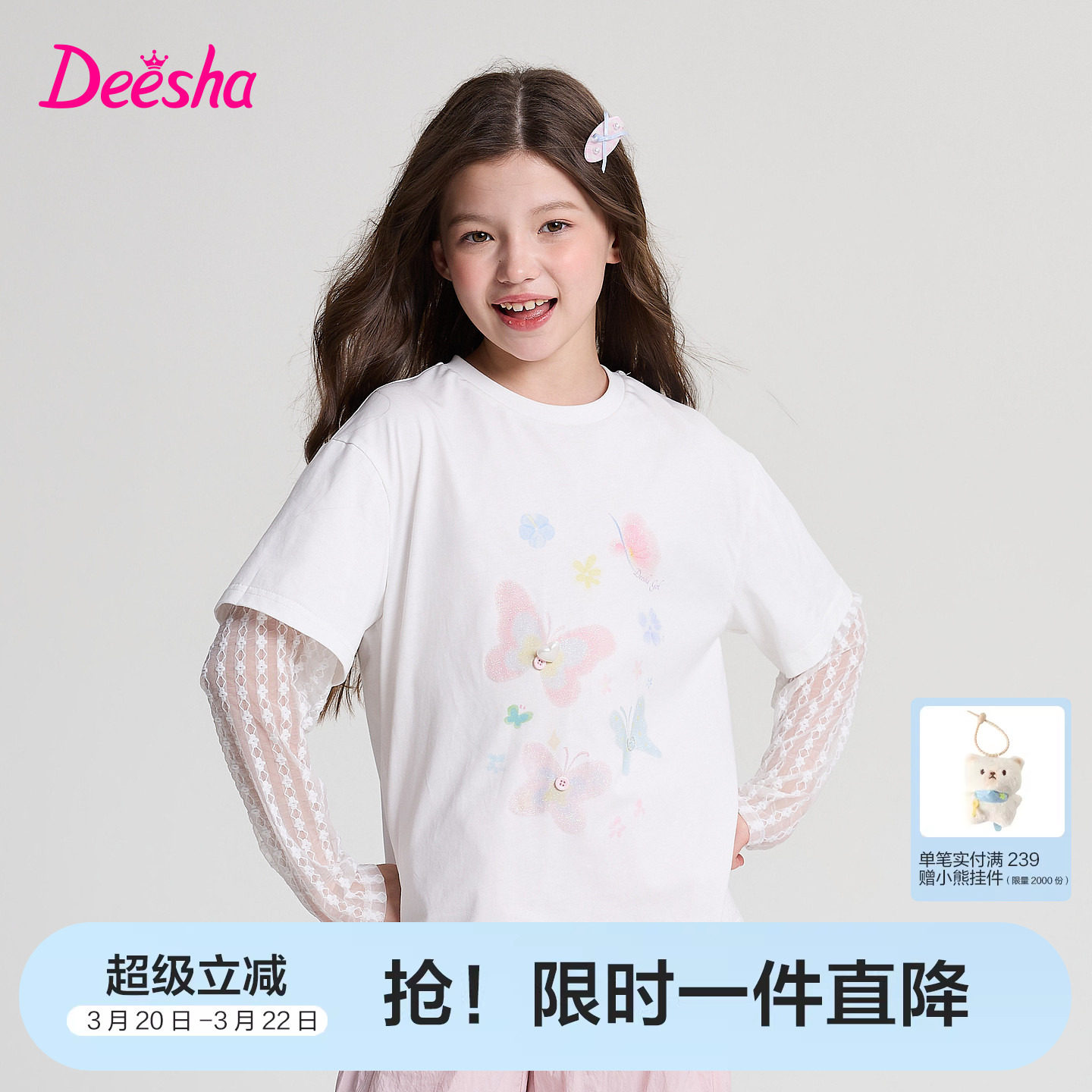 DEESHA/笛莎官方旗舰店的这款女童T恤,采用优质面料,设计简洁大方,时尚又舒适,是孩子们喜爱的夏季服装之一。无论是作为日常穿着还是参加活动时的装扮,都是不错的选择。