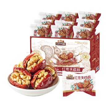【前500单送芒果干116gx3,3元饭卡】三只松鼠枣夹核桃750g礼包!骏枣配核桃仁,营养加倍/甜中夹脆双料美味,香甜酥脆好滋味,个大新鲜很饱满,红枣遇上核桃,立刻激发脑部能量,养颜补脑二合一。